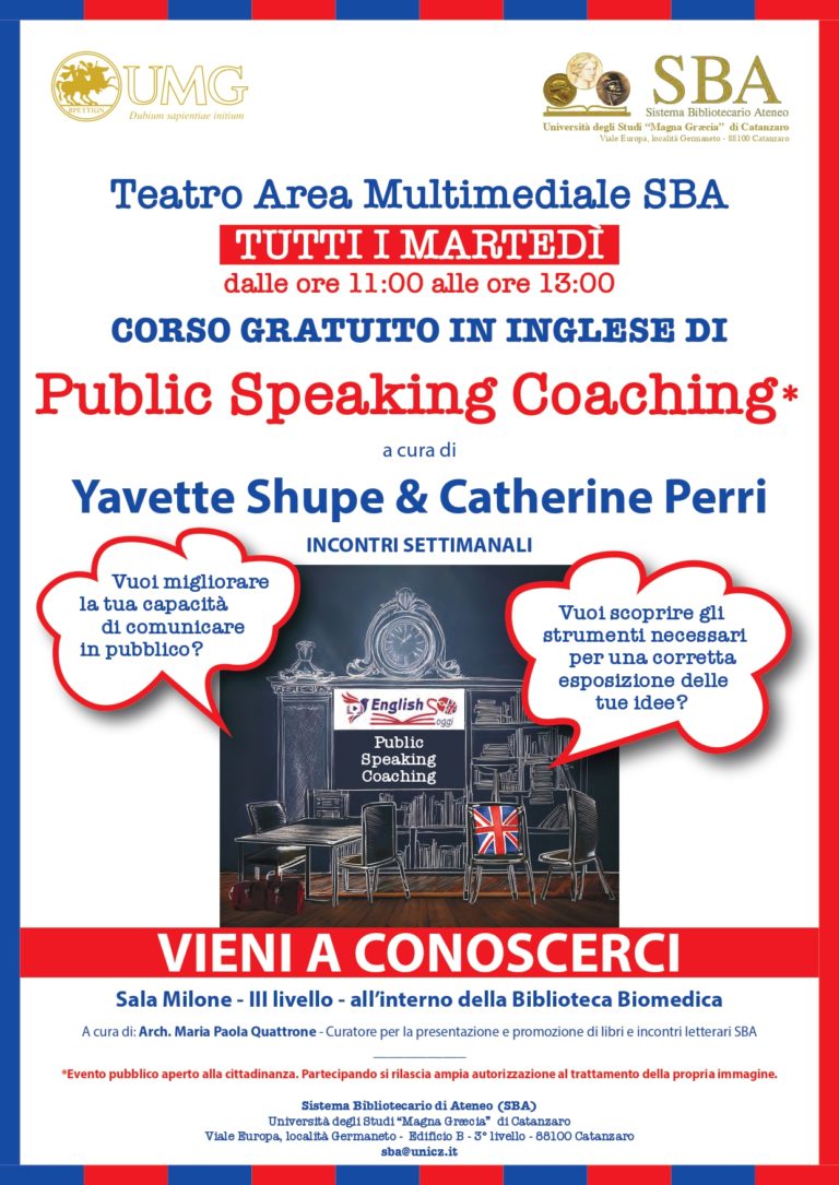 Public Speaking Coaching – Corso in ingleseDi adminSBAunicz / 6 Febbraio 2026 Avviso: Cambio Aula A partire da giorno 10 febbraio 2026, il corso si terrà nella Sala Milone,sita al III° livello, all’interno della Biblioteca Biomedico – Farmacologica. Visitatori: 24