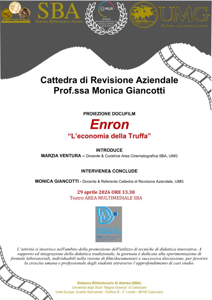 Proiezione docufilm “ENRON – L’economia della truffa”Di adminSBAunicz / 22 Aprile 2026 Visitatori: 10
